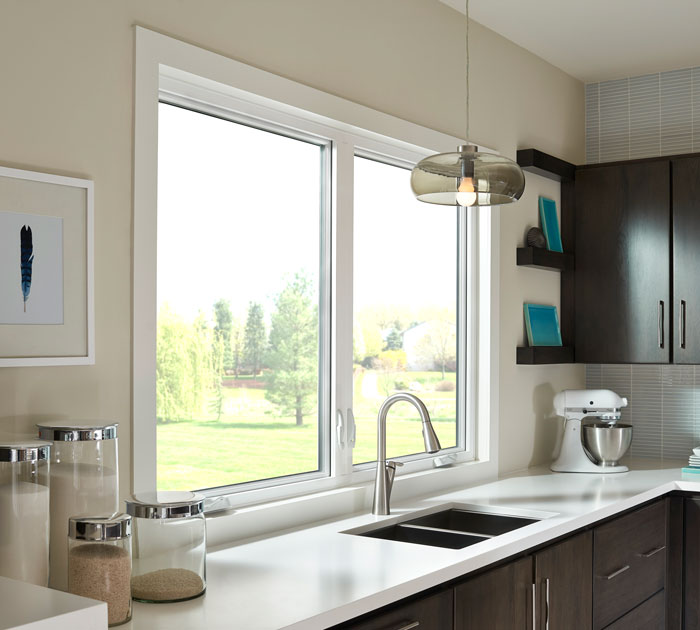 Similar to a casement window, an awning window opens outward on a horizontal axis. The awning window provides the same features as a casement window but with the window opening vertically from the bottom. The awning window can be opened to create a passthrough window for your next gathering too!